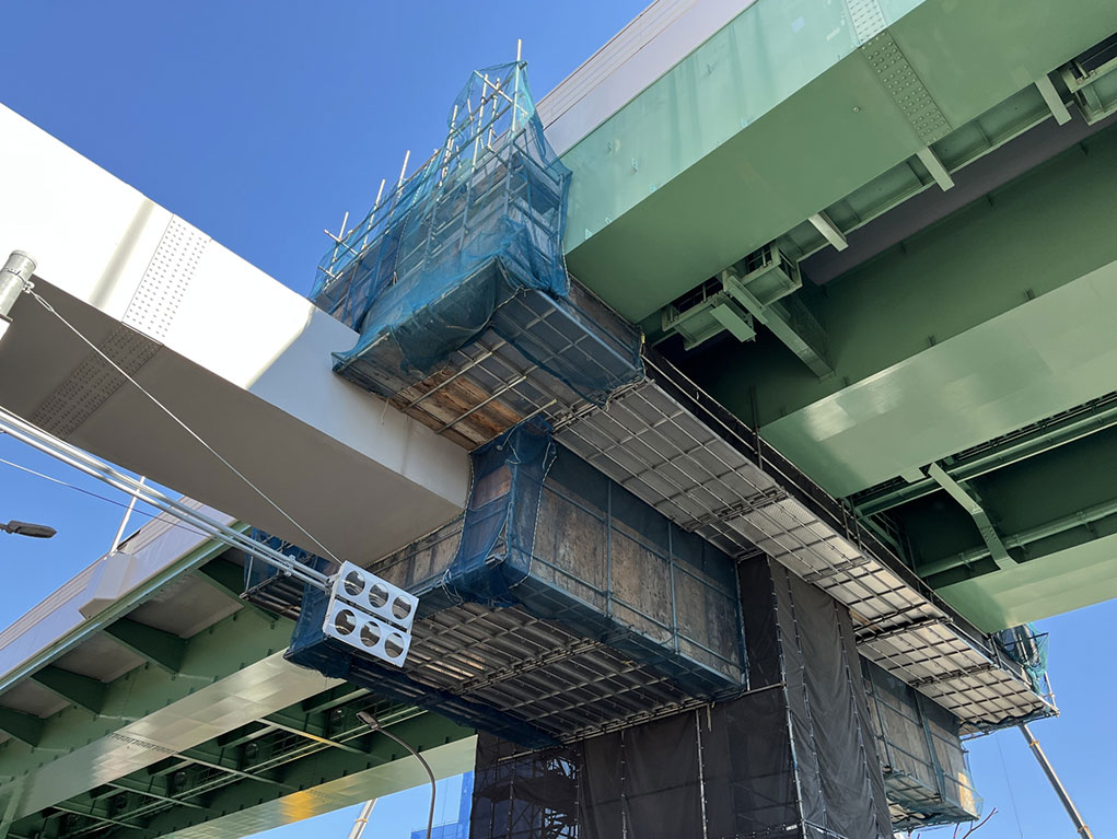 老朽化や損傷が進んだ橋梁や構造物を対象に、ひび割れ補修や鋼材の補強、防水処理などを行い、安全性と機能を回復させる工事です。