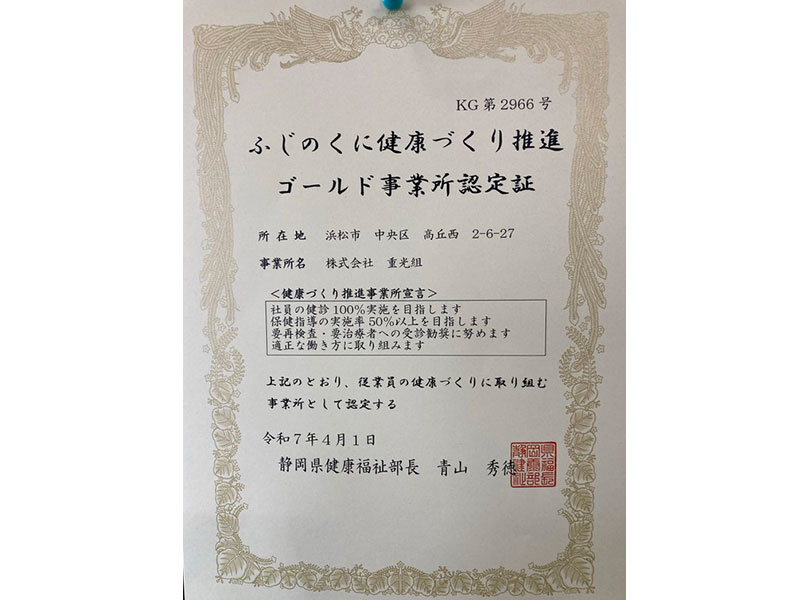 重光組は、無事故・無災害を目指して次の基本方針を定めています。一人ひとりが安全意識を高め、安心して働ける職場と高品質な施工を社会に提供します。